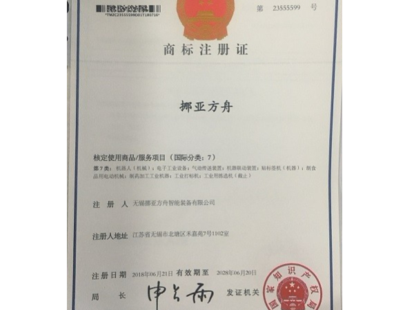 挪亞方舟商標(biāo)注冊(cè)證